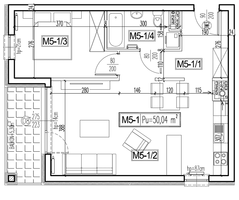 Aleje Kaczorowskiego: Blok nr 1, cz. A Mieszkanie: M5-1