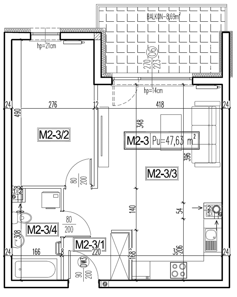 Aleje Kaczorowskiego: Blok nr 1, cz. A Mieszkanie: M2-3