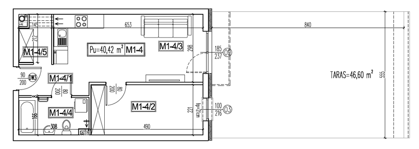 Aleje Kaczorowskiego: Blok nr 1, cz. B Mieszkanie: M1-4
